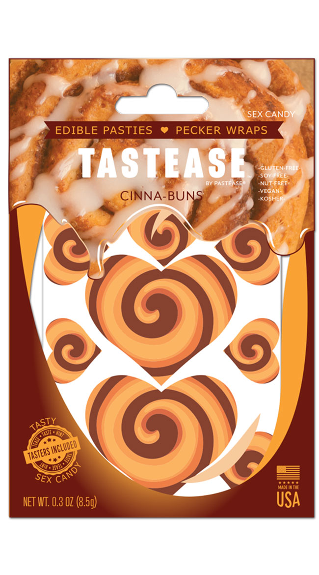 Sweeten your erotic activities with these edible cinnamon roll heart pasties/pecker wraps. To use, get the back of the pasties damp with water or saliva and stick it to your chosen surface. Don't open until you're ready to taste, and don't put it anywhere you shouldn't.