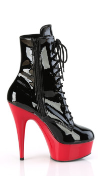 6" (152mm) Heel, 1 3/4" (45mm) Plaform Lace-up Front Two Tone Ankle Boot, Inner Side Zip Closure