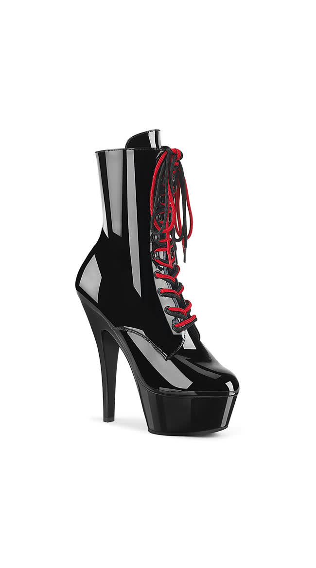 6" (152mm) Heel, 1 3/4" (45mm) Platform Ankle Boot w/ Interchangeable Shoe Lace (Red & Black), Inside Zip Closure