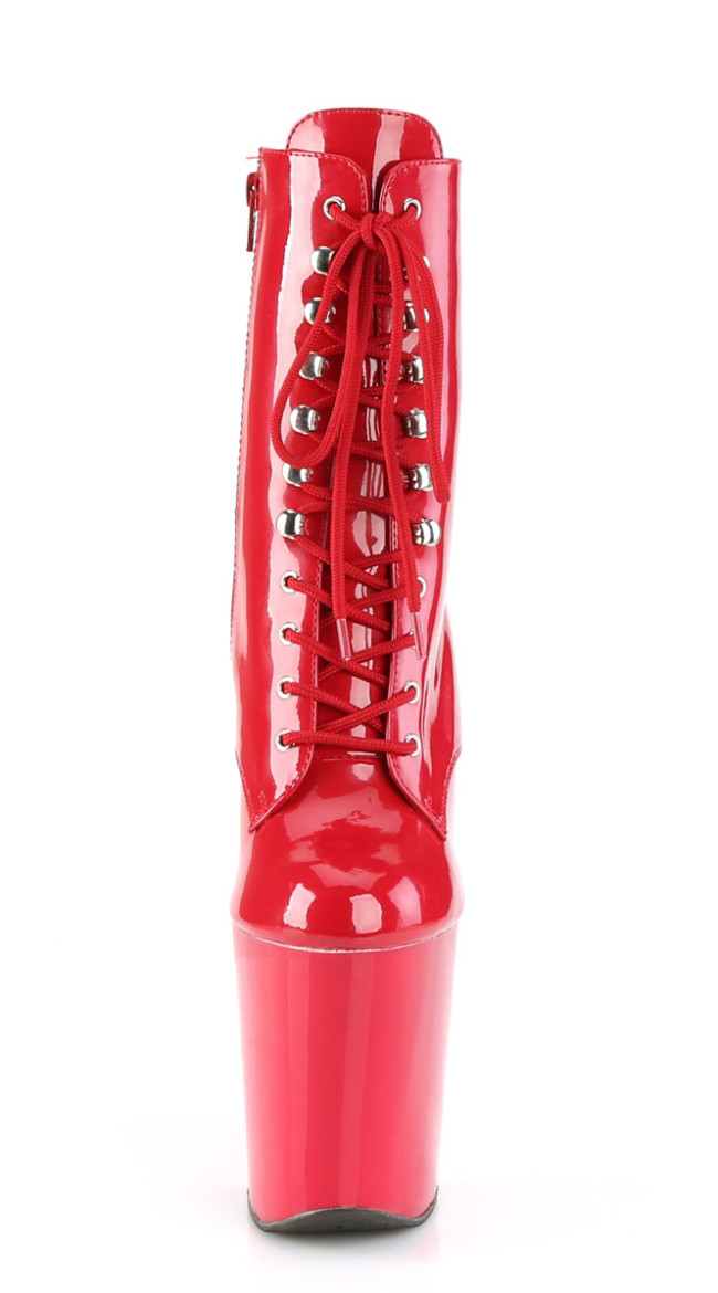8" (200mm) Heel, 4" (100mm) Platform Lace-Up Front Ankle Boot, Inner Side Zip Closure