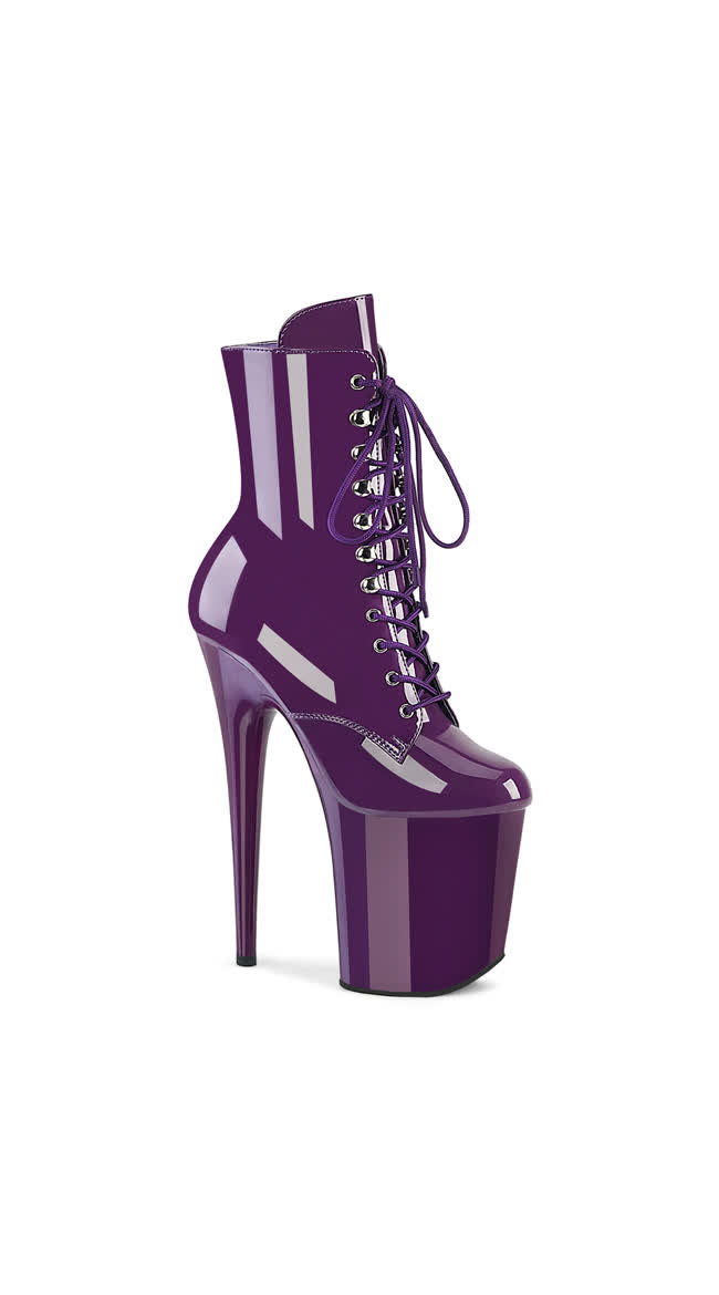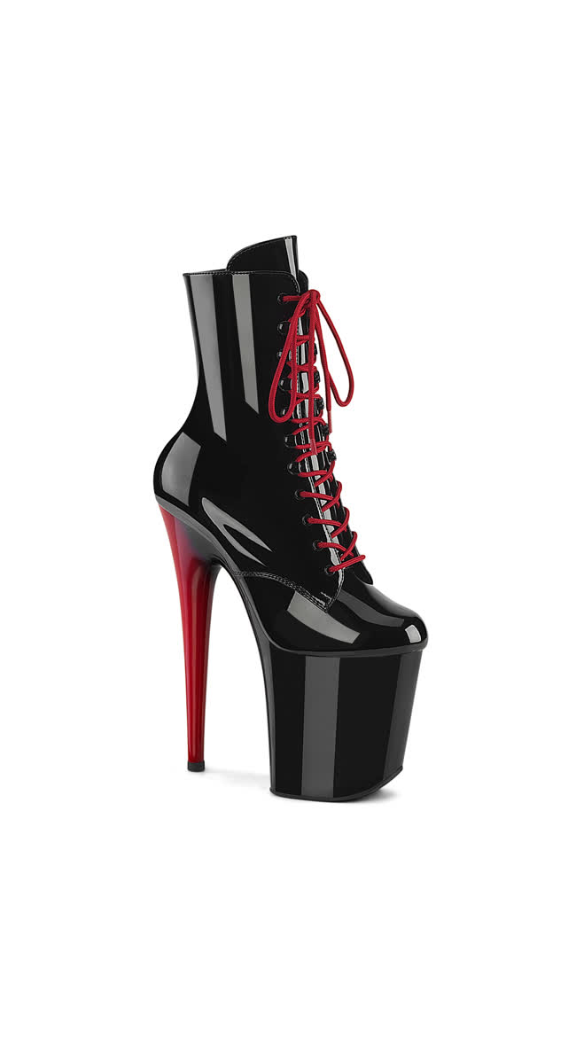 8" (200mm) Heel, 4" (100mm) Platform Two Tone Lace-Up Front Ankle Boot w/Interchangeable Shoe Lace (Red & Black), Inner Side Zip Closure