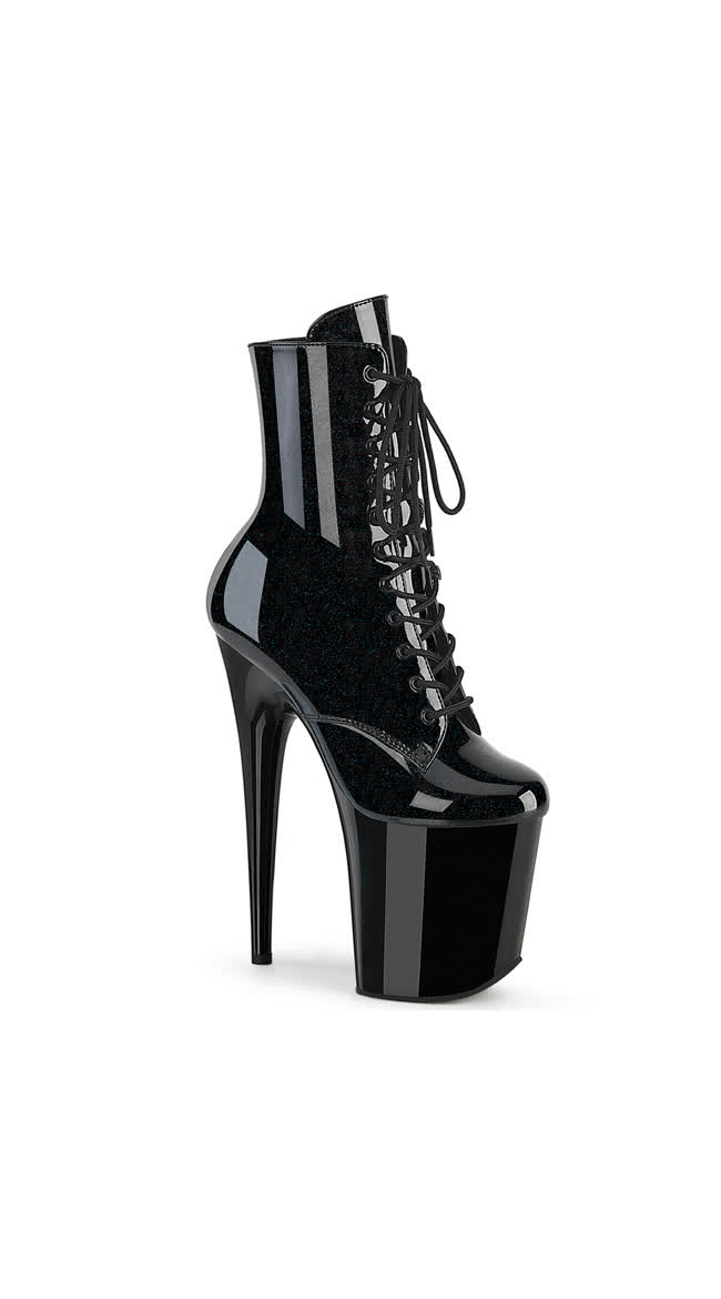 8" (200mm) Heel, 4" (100mm) Platform Lace-Up Front Ankle Boot, Inner Side Zip Closure