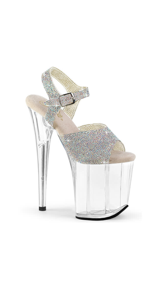 8" (200mm) Heel, 4" (100mm) Platform Ankle Strap Sandal Featuring Rhinestone Fully Embellished Upper