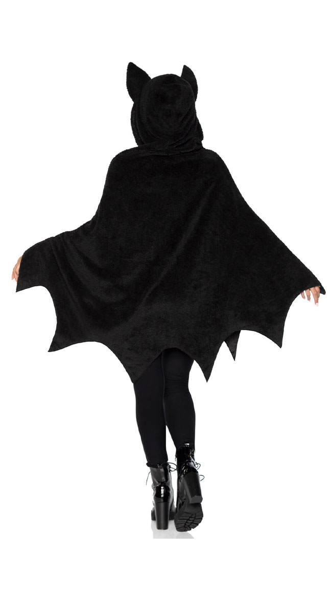 Well hello, cave dweller. Flap those wings til your heart's content in this All That Bat costume featuring a black cozy poncho with jagged edge hem, and an over sized hood with bat ears. (Wig, leggings, and boots not included.)