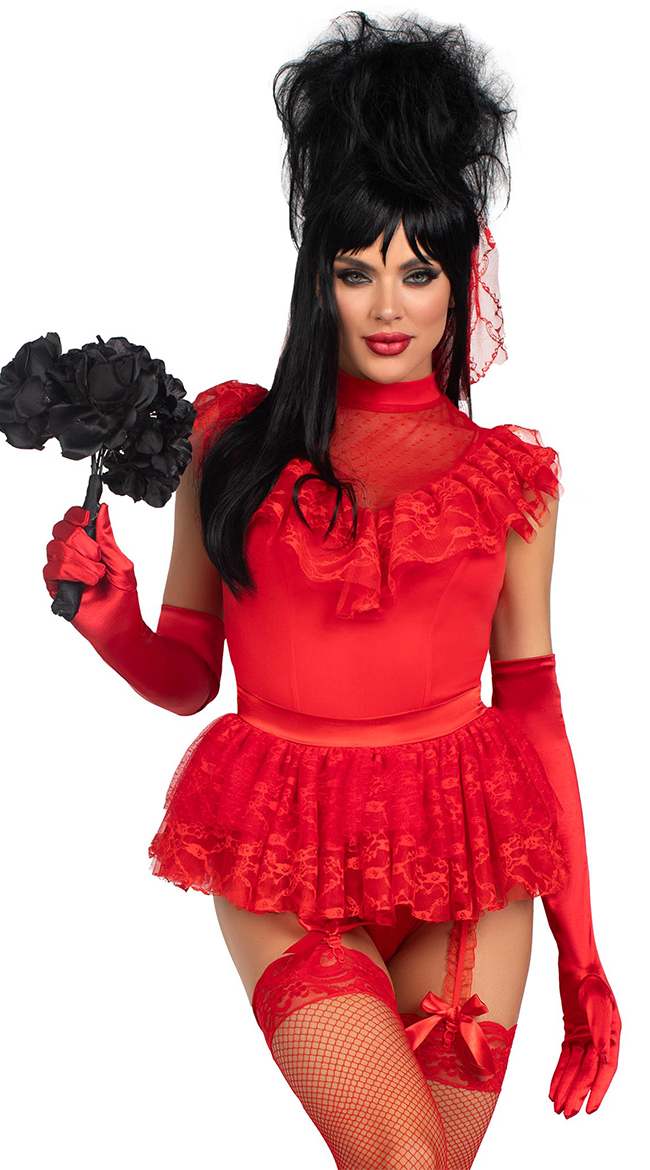 • Gloves, wig, stockings and flowers not included