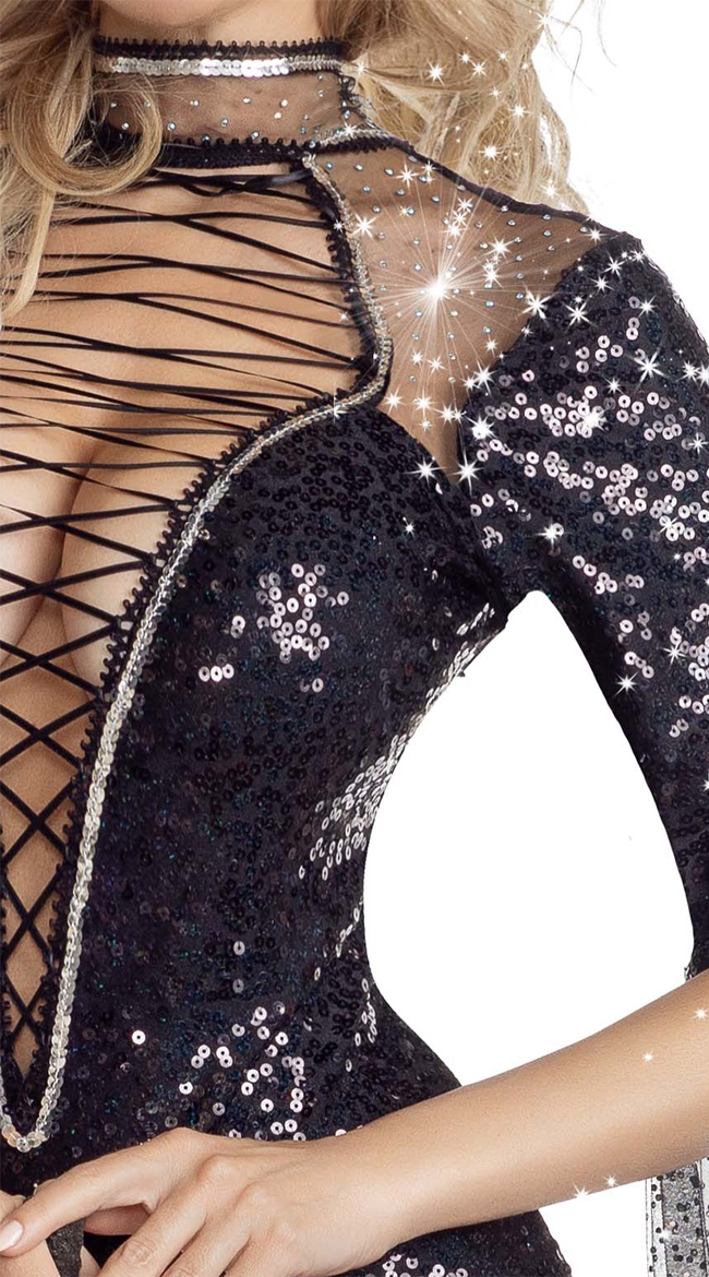 • Front ribbon lace-up and shimmering diamond mesh accents