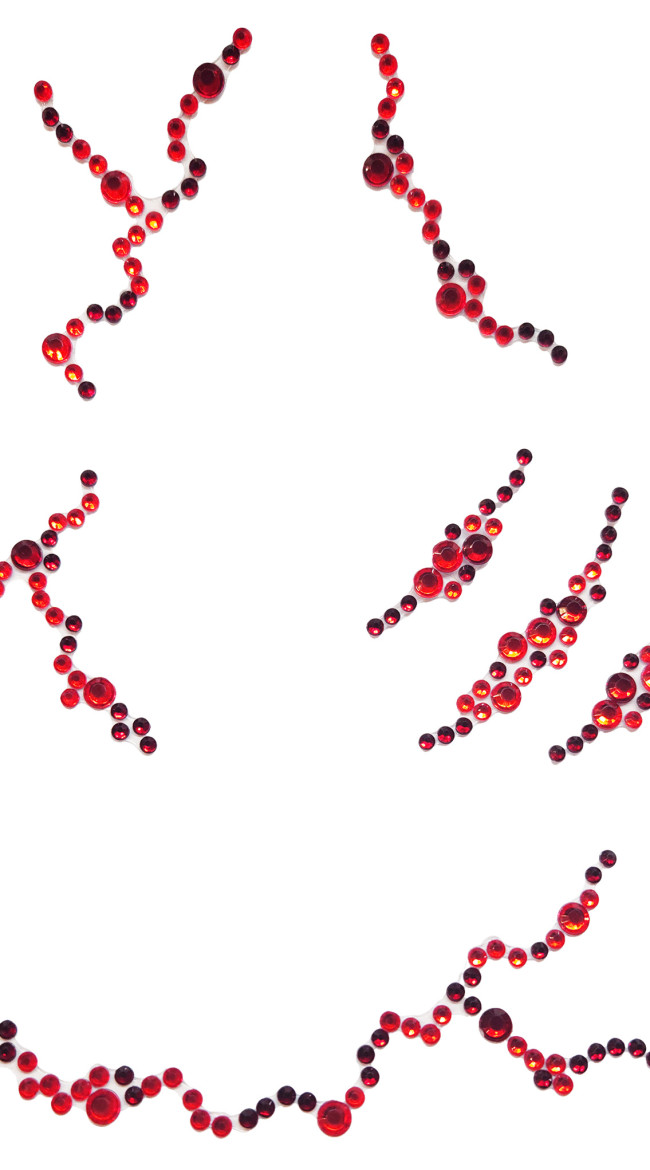Crown yourself the dark queen of Halloween with this rhinestone face jewel set featuring crimson gems arranged in a sultry cracked porcelain design. Paired with a sparkling tiara, this hauntingly glamorous accessory instantly transforms any look into a wickedly royal fantasy.