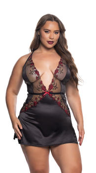 Turn up the allure with the Blossom Beauty Slip, a seductive lingerie piece designed for confidence and romance. Crafted from stretch satin and embroidered rose lace, this slip combines luxurious softness with a flattering fit that hugs your curves. The plunge neckline accentuates your décolletage, while the lower back keyhole adds an unexpected touch of elegance and intrigue. A delicate satin ribbon bow detail completes this enchanting look, making it perfect for intimate evenings or special occasions.