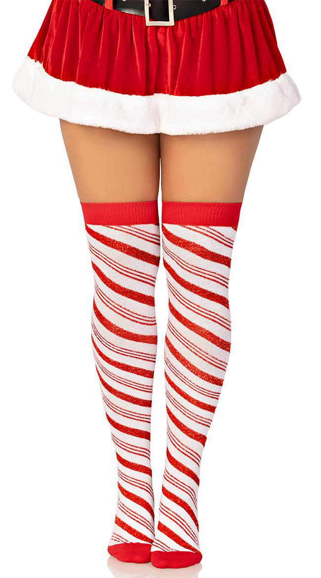 • Candy cane lurex striped over the knee socks.