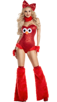 Get down and dirty in this sexy fuzzy green monster costume that’s anything but trashy. Featuring a glittery strapless bodysuit with big bold eyes, shaggy faux fur leg warmers, playful wrist cuffs, a sparkling oversized bow headband, and a matching choker, this look is ready to own Halloween. Complete with a mini basket prop, it’s perfect for a cheeky night out.