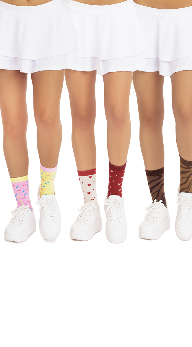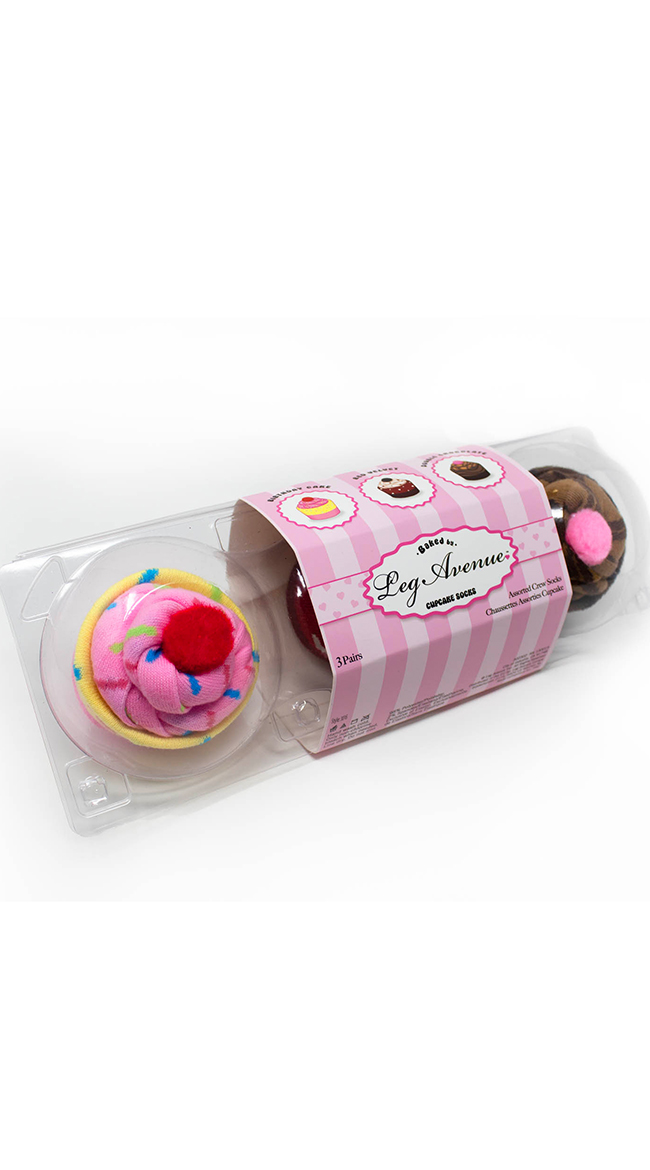 • Includes 3 pairs of fresh baked woven cupcake crew socks with mismatched designs.