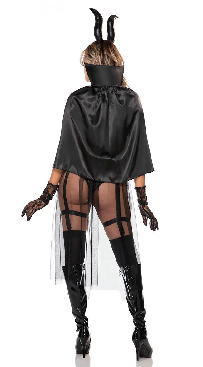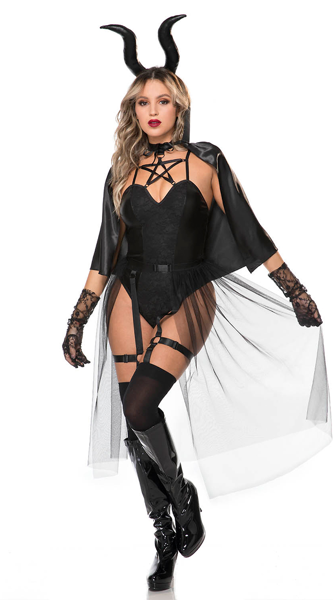 • Black teddy bodysuit with pentagram and contrast lace detail