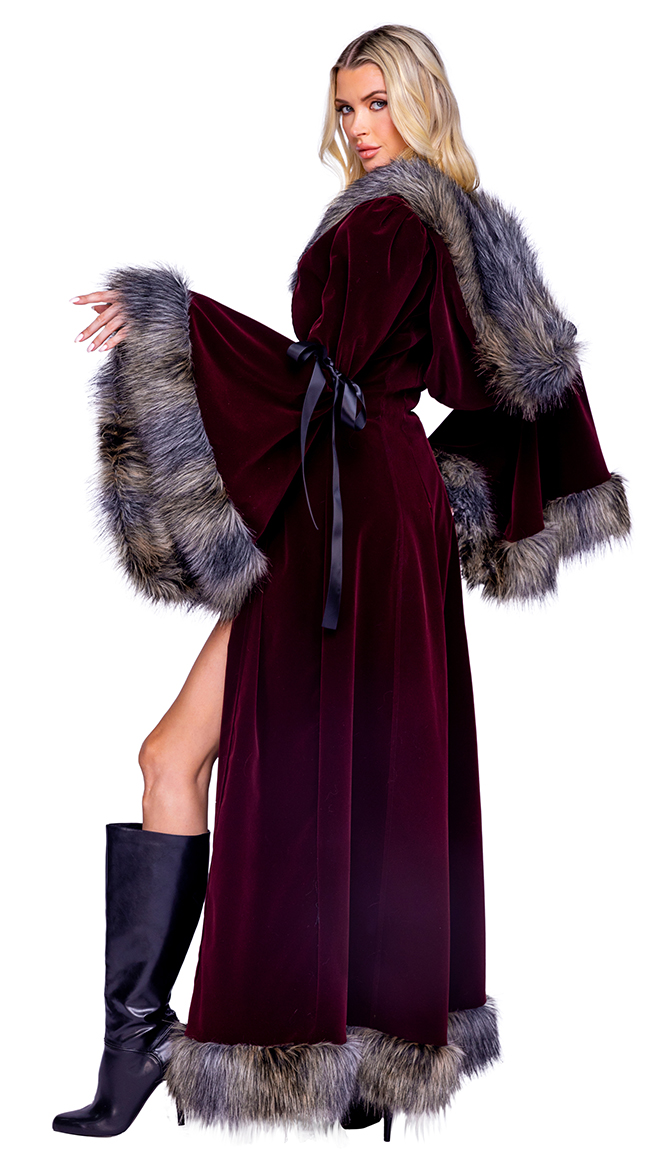 • Velvet Zip-Up Hooded Coat with Belle Sleeves