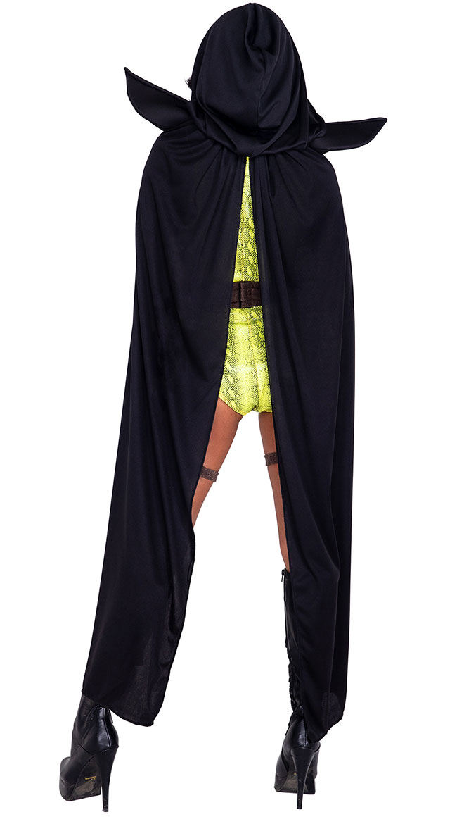 You're blending right in, desert dweller. It's your time to pounce! Show them what you got in this Desert Combat Ninja costume featuring a neon snakeskin bodysuit with a V-neckline, wraparound garters, a brown harness, a hooded cape, and a snakeskin mask. (Swords and boots not included.)