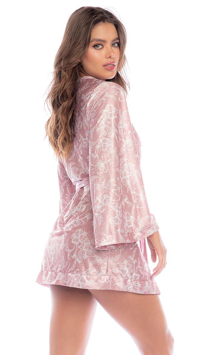 • A must-have robe in a sophisticated, satin-look fabric in a floral print