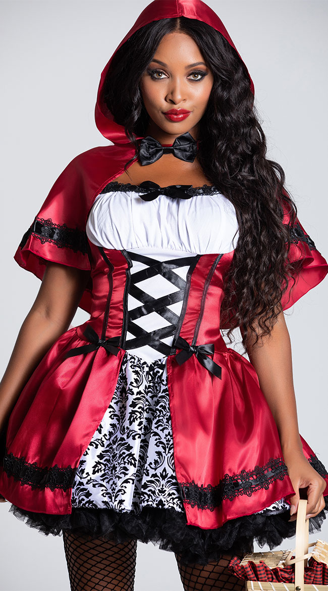 I love the material and it is very comfy! I ordered a Large since my bra cup is a D, but it did fit loose on the hips but no biggie ! I love this costume it’s super flattering and the hooded cape is adorable! It shipped the very next day and received it within 2 days!