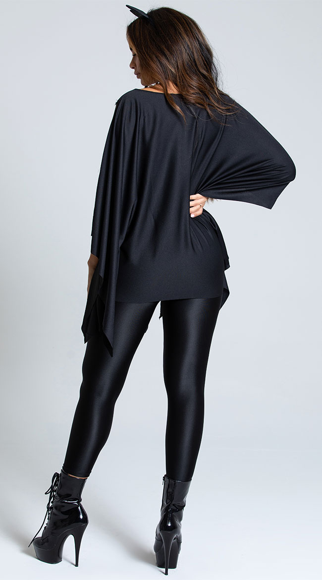 Shine brighter than a diamond! Feast your eyes on this paw-sitively glamorous Glitter Cat Poncho costume featuring a cold shoulder poncho with a printed silver cat face on the front, glitter accents, sheared edges, and a knotted bottom tie accent. (Cat ears, leggings, and boots not included.)