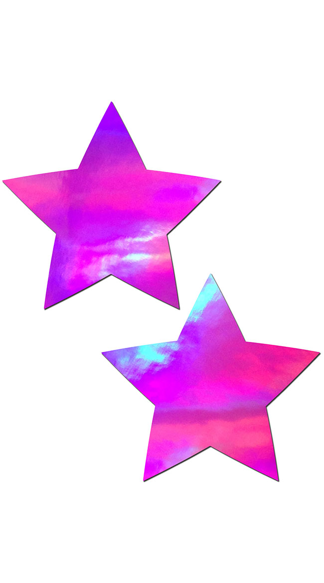 Shine like the night sky in these holographic pink star pasties featuring a latex-free, medical-grade, waterproof adhesive that will stay securely in place until gently removed.