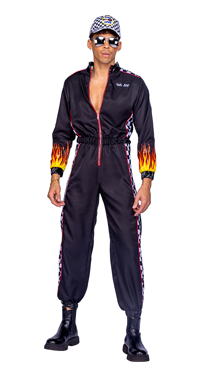 • Zip-Up Jumpsuit with Checkered Side Panels