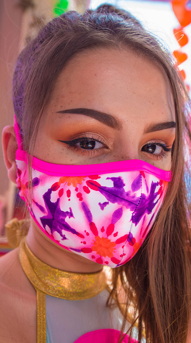 Have all eyes on you. You'll look to die for in this stylish yet functional face mask featuring a snug stretch fabric that resembles a swimsuit, a tailored front for a smooth appearance, an interior slit pocket with a protective filter (included), and two adjustable tie back closures. SMALL/MEDIUM fits narrow/average faces. LARGE/X-LARGE fits fuller faces and men.