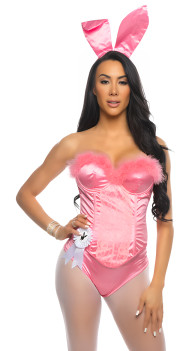 Includes Lace-Up Bustier with Lace & Marabou Trim, Shorts, Ribbon, Bunny Ears, & Tights