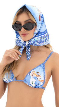 Blue Floral Triangle Tie Side Bikini Set