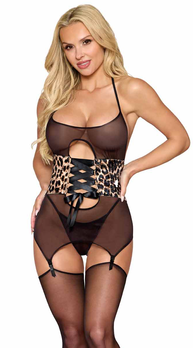 • Leopard printed velvet waist corset detail with adjustable wide ribbon lace-up
