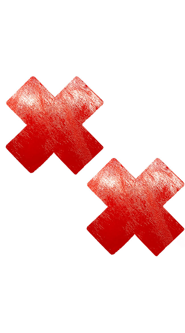 Feeling oh so bad? Show your babe what's off limits in these ultra sexy pasties featuring an X or plus shape, a liquid red front, and an adhesive backing that can be easily peeled off and stored away for future uses.