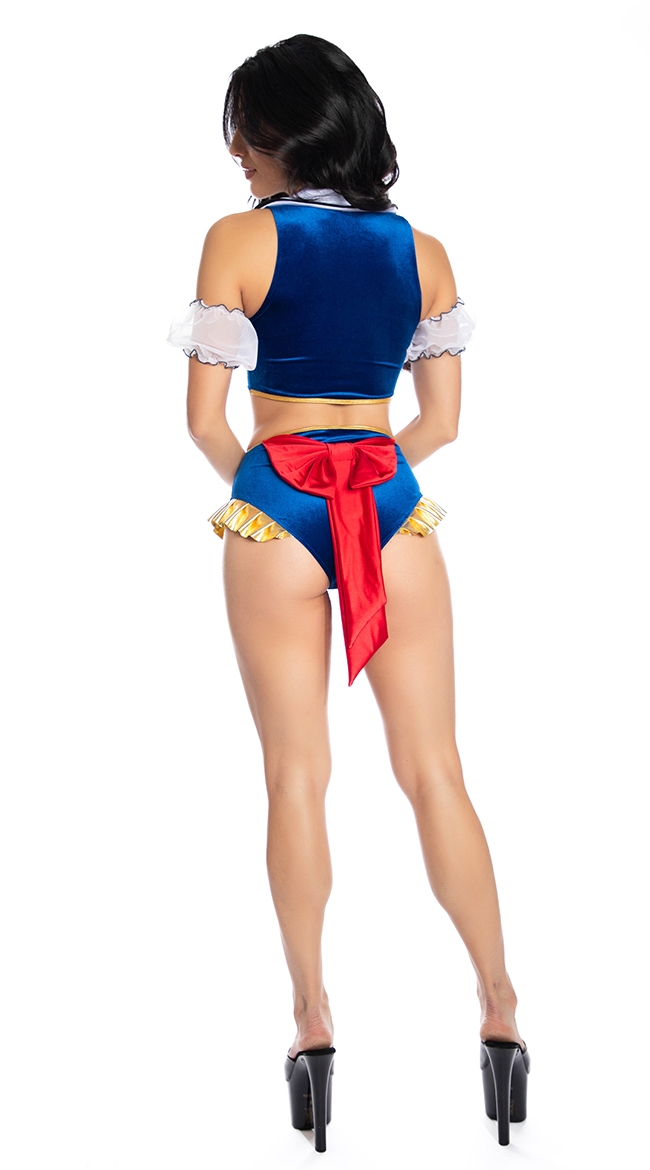 • Velvet high waisted bottoms with ruffle trim and a red bow on the back