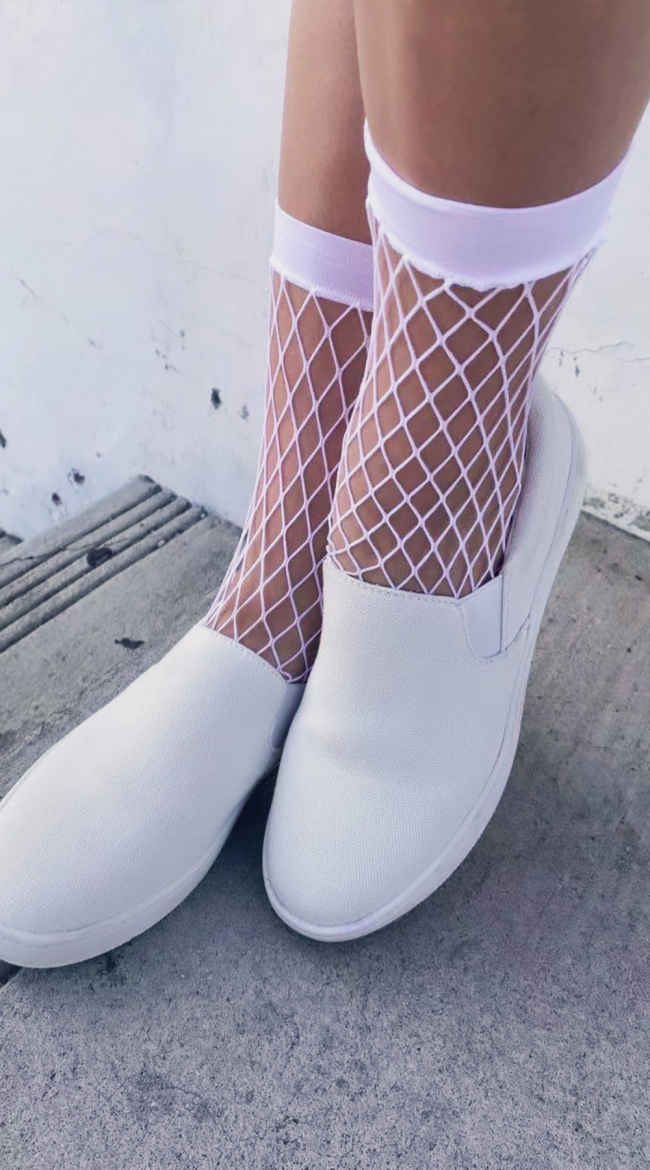 Flirt from the floor up in these cheeky fishnet ankle socks. Featuring a stretchy diamond net and soft, banded cuffs, they’re the perfect playful touch to your boudoir look or costume ensemble. Whether you're dressing up or undressing, these sexy little stunners know how to tease.