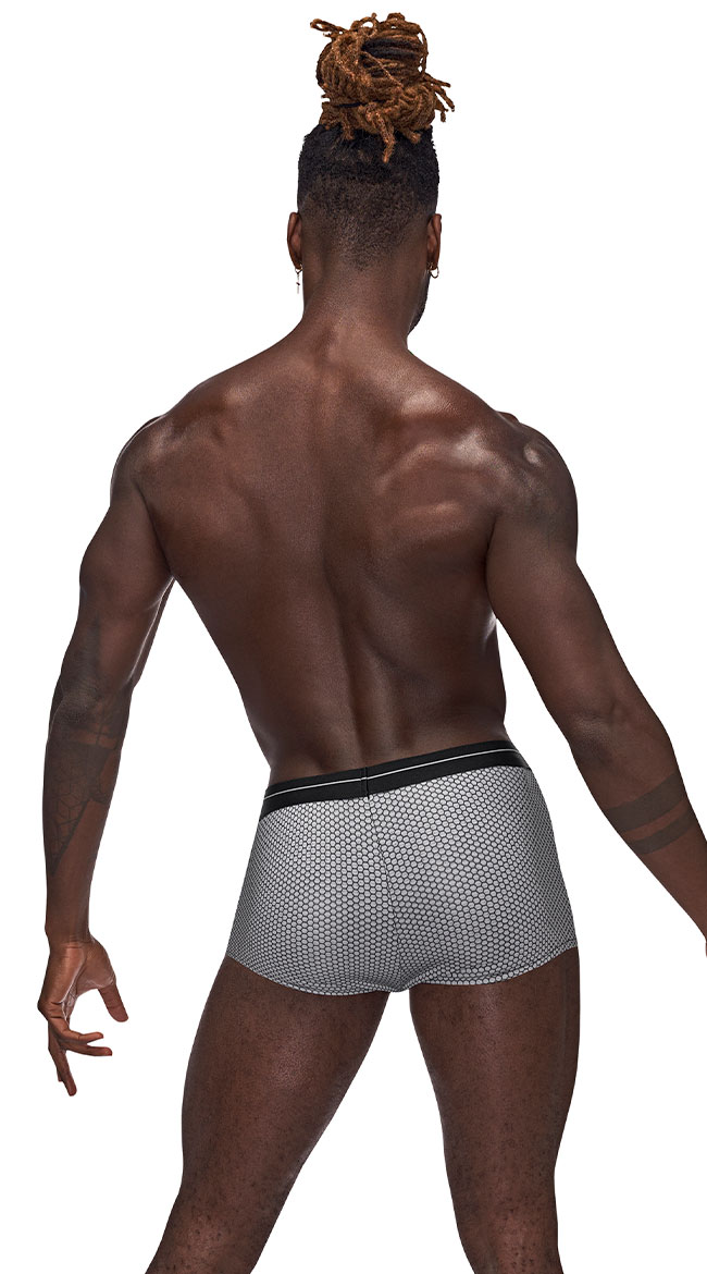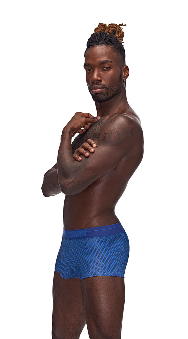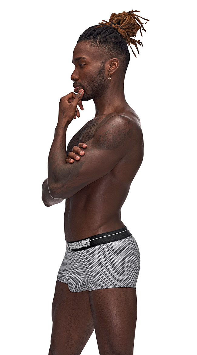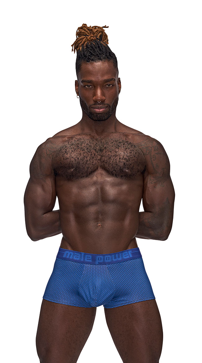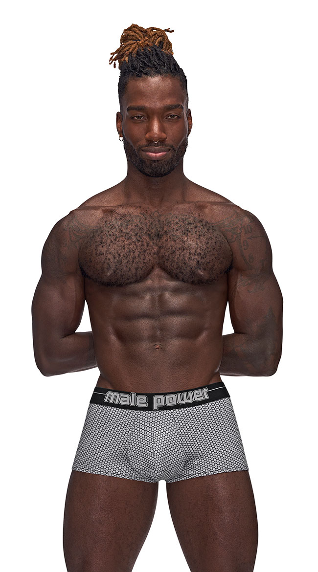 Slip into something more comfortable like this men's boxer short featuring a comfortable fit with an allover hexagon design, "MALE POWER" printed on a thick waistband, and fullback coverage.
