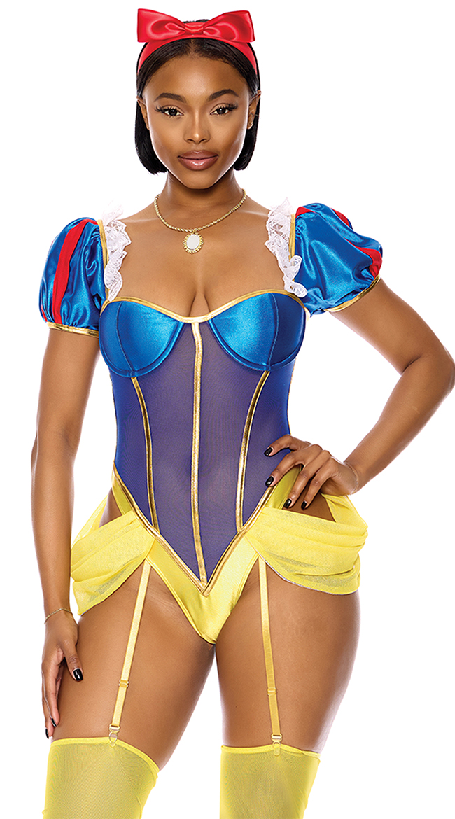 • Hip sash detail with gold trim and attached garters