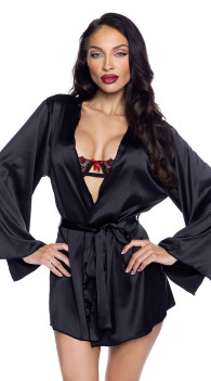 Indulge in elegance and comfort with this Black Satin Robe. Featuring a luxurious satin fabric that feels incredibly soft against the skin, this robe is perfect for both lounging and dressing up for special occasions. The relaxed, flowy design with wide sleeves adds a touch of sophistication, while the tie waist ensures a flattering fit. A hint of sensuality is added with a peek of lace detailing at the bust, creating a perfect balance between alluring and refined. Ideal for pairing with lingerie or wearing on its own, this black satin robe is a must-have in your intimate wear collection.