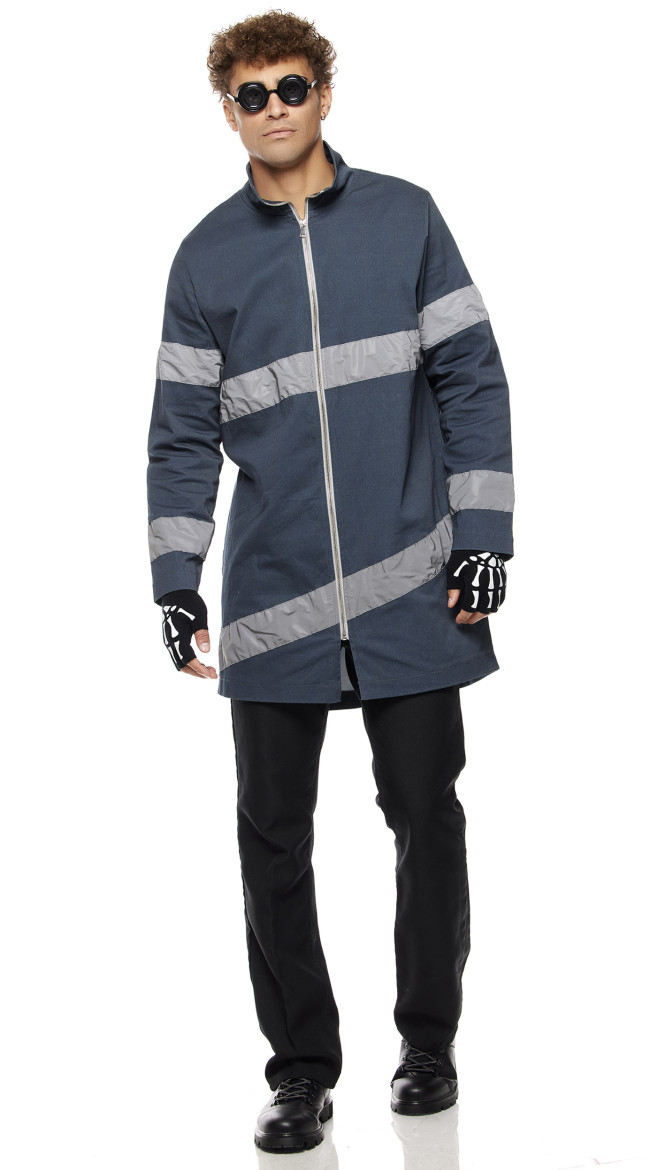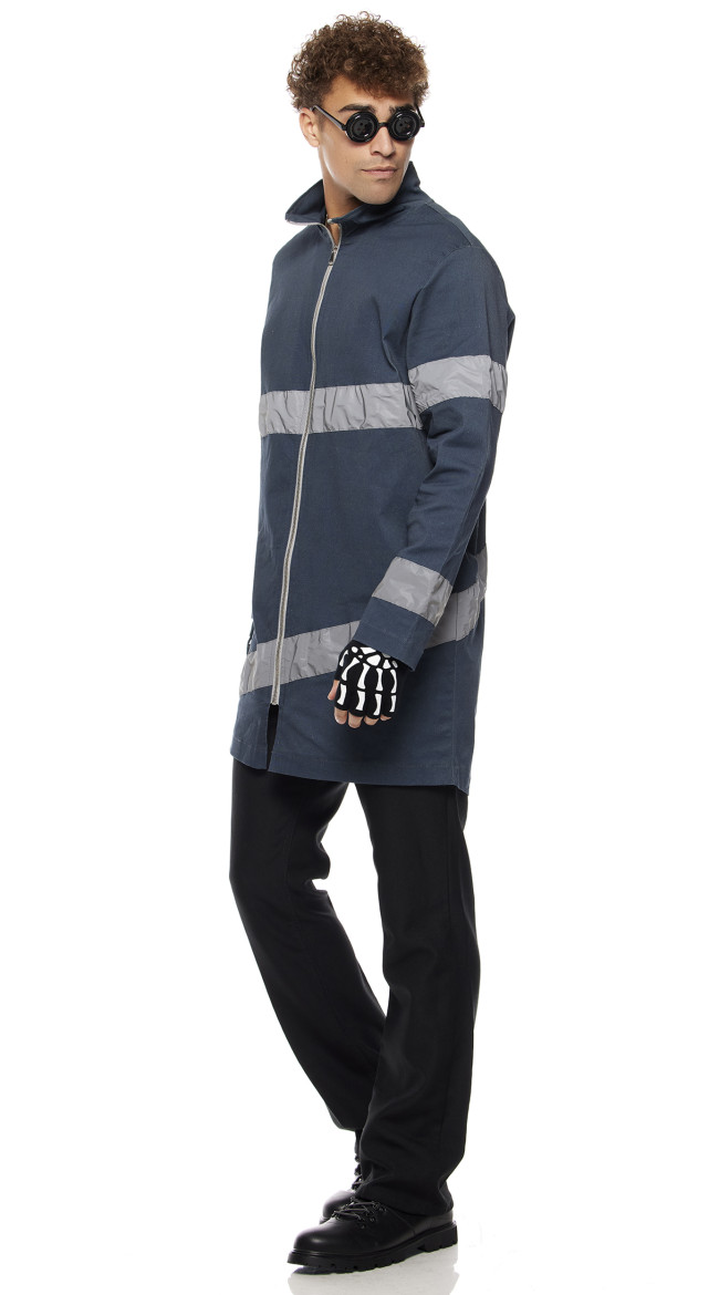 Step into a world of adventure and mystery with this sleek, Other Friend-inspired costume. The sharp, long zip-up jacket with bold silver stripes makes a statement, while the included black gloves and stylish sunglasses complete your high-tech look. Whether you're turning heads at a Halloween party or rocking a themed event, this costume will ensure you're the center of attention. (Pants Not Included.)