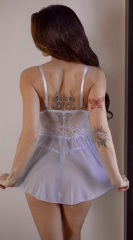 • Chantilly stretch lace and mesh, Chiffon gathered skirt