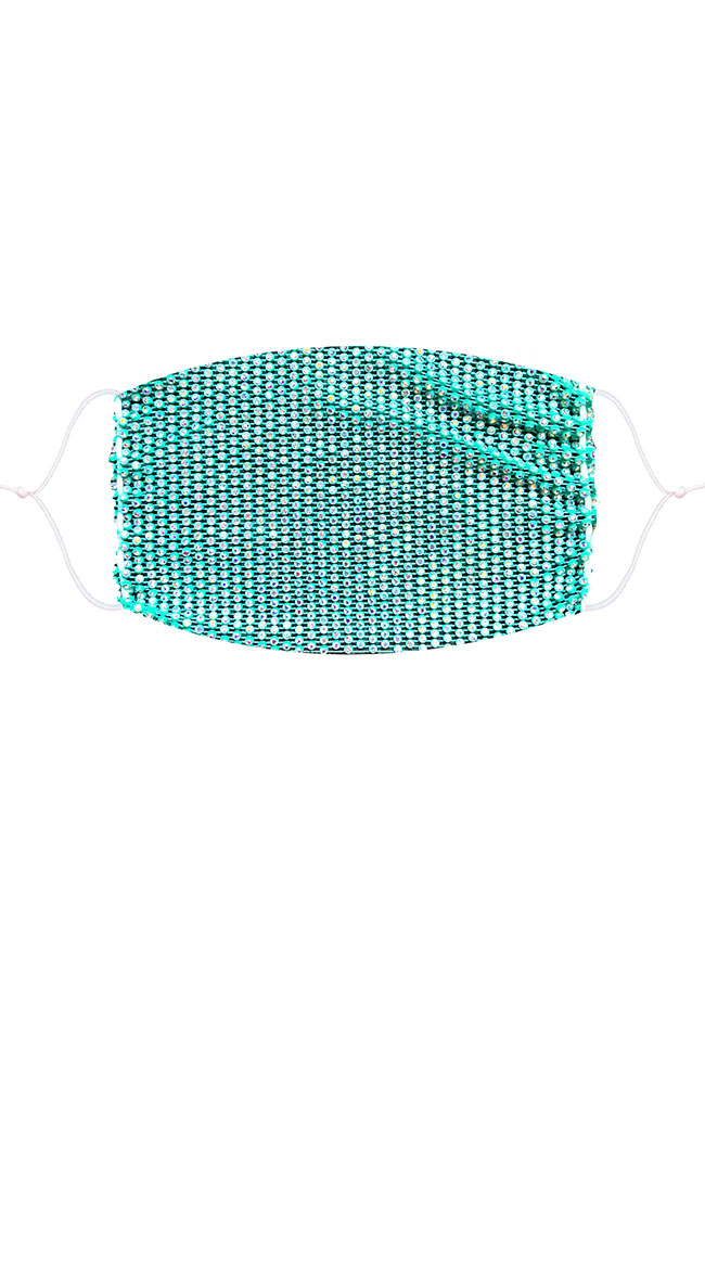 Take a look at that bling! Bring out your all-star quality in this sexy fashion face mask featuring a stylish semi-sheer mesh with iridescent jewel accents, and stretchy elastic adjustable ear loops for added comfort. Option to layer a solid mask underneath for a full coverage look. SIZE: 4.5" height (super stretchy), Jewel base 7" wide, 14" edge to edge including the ear loops.