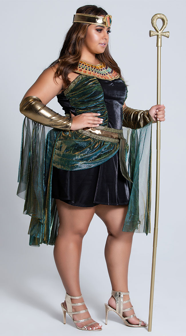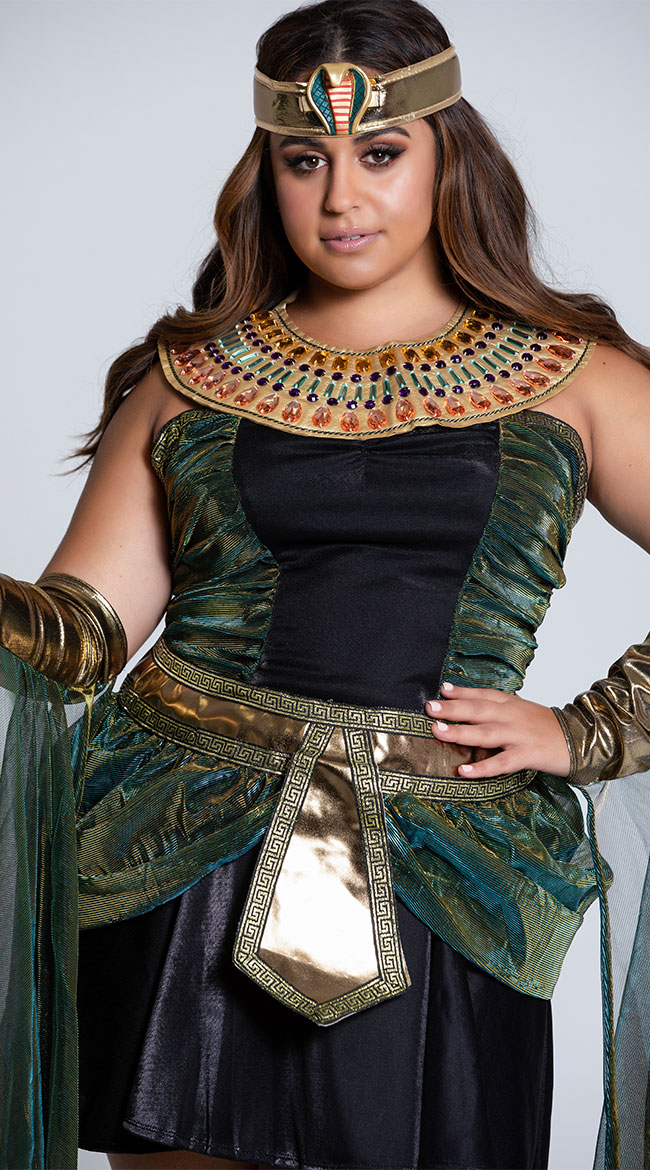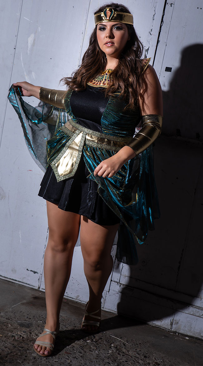 I purchase a XXL. Im 5'3" 180lbs. It fits pretty good! I'm a 38C. So top part is a little big. But I can take it in on each side. Then it will be perfect! Beautiful materials! Looks as pictured. I don't like the collar though..only reason I didnt give it 5 stars.. it doesn't go all the way around the neck, its hot!, and bulky looking.. So I ordered a cute cheap Egyptian style necklace to go with it! Cant wait to wear it this Halloween!!