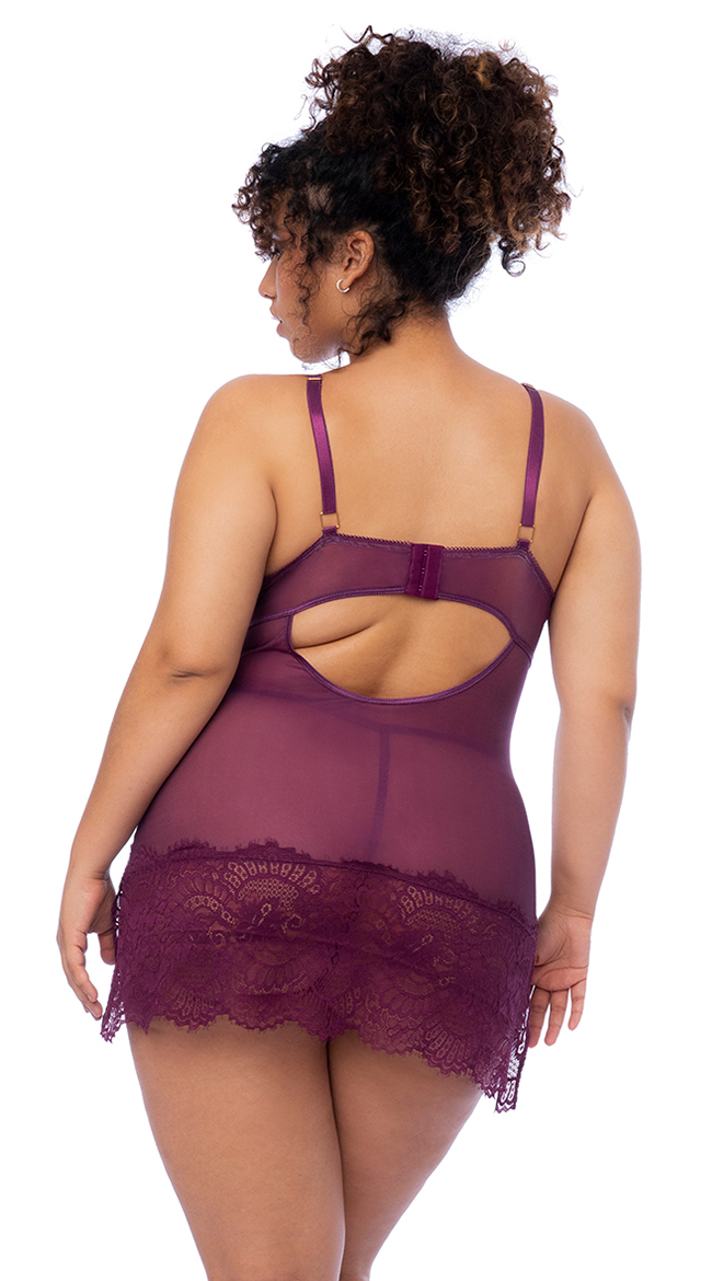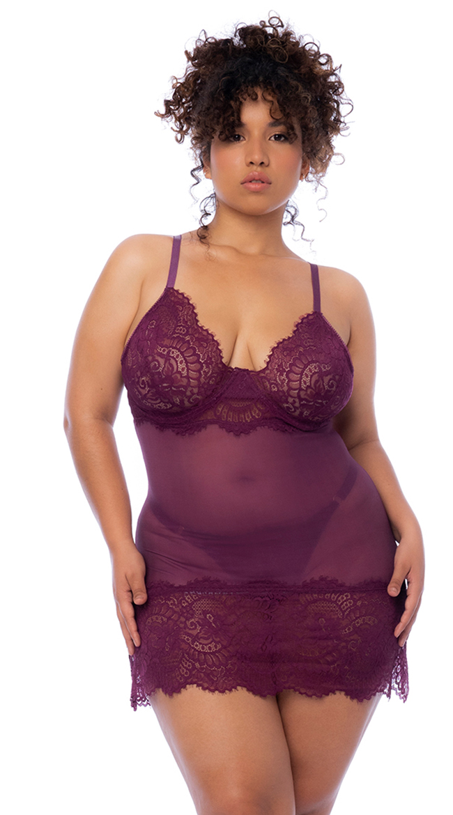 • Eyelash lace babydoll with underwire, side slits, adjustable straps