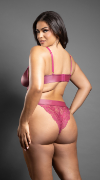 • Berry satin soft cup bralette with lace overlay