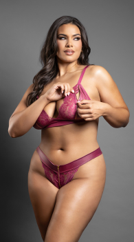 Turn the confidence all the way up in this berry satin and lace Two Piece Set, designed to love your curves every bit as much as you do. The soft cup bralette gives you that effortless, lifted look with scalloped lace and glossy satin, while the matching panty brings the spice with a cheeky cut and bold zipper detail. Stretchy, comfy, and totally curve-celebrating — this set is here for your main-character era.