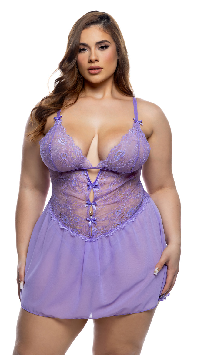 • Babydoll: Chantilly stretch lace and mesh, Chiffon gathered skirt,
