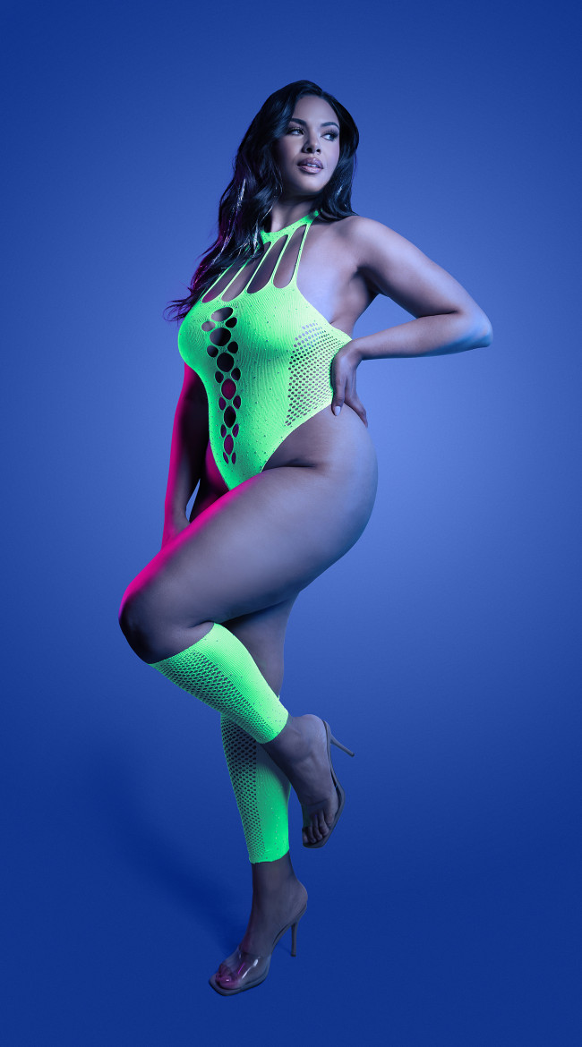UV reactive rhinestone knit teddy and matching gloves (can also be worn as leg warmers)