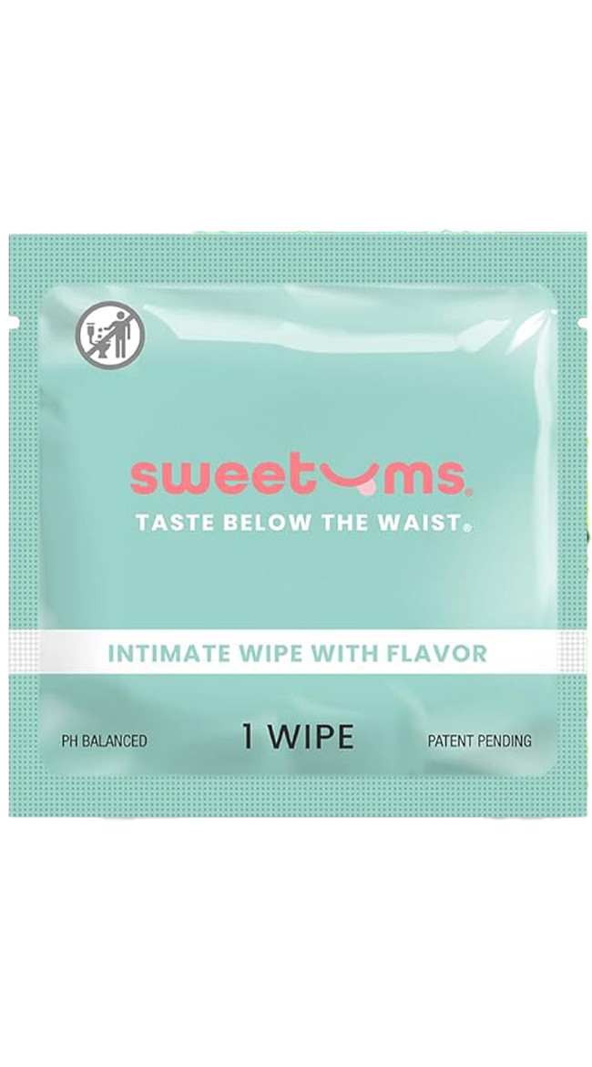 • Paired with two packets of Mint-flavored Sweetums pH-balanced intimate wipes