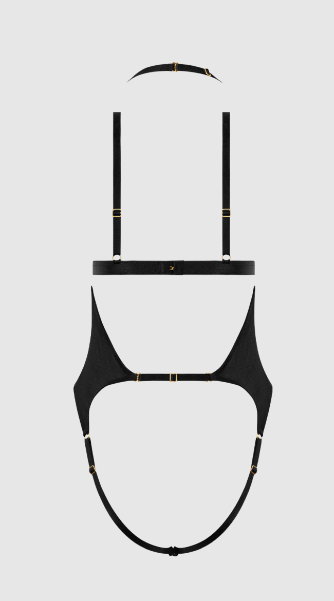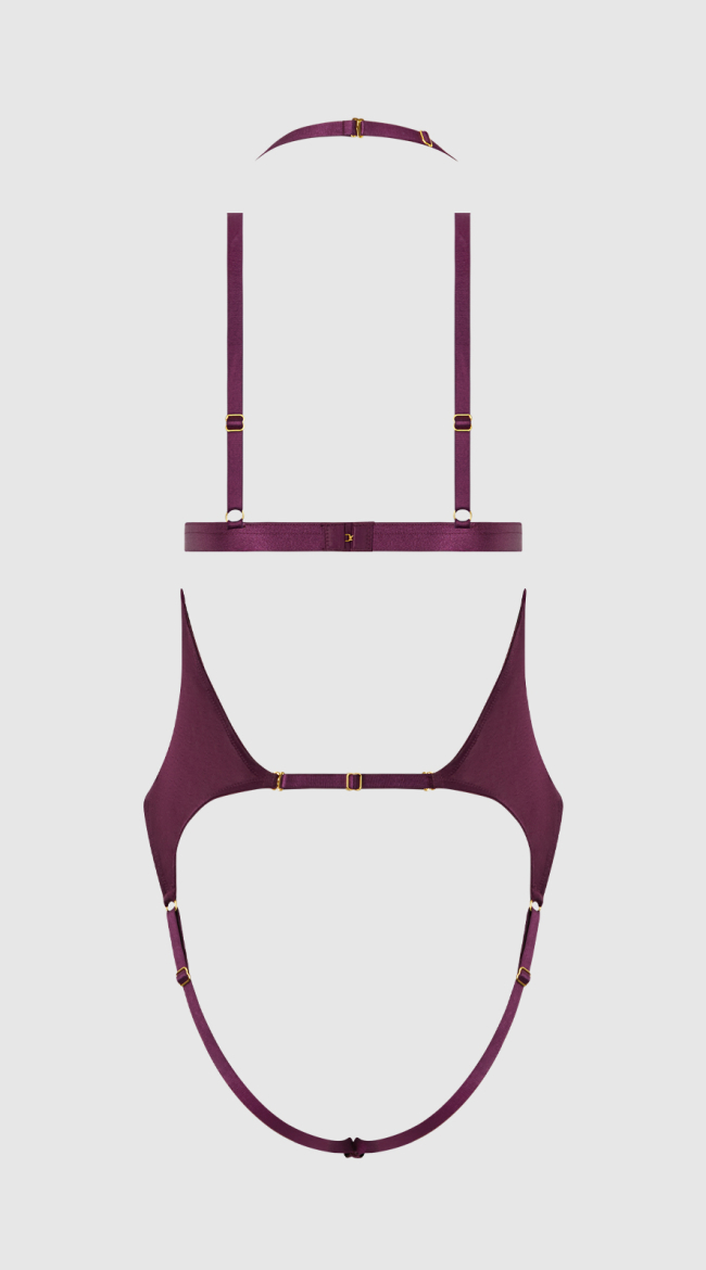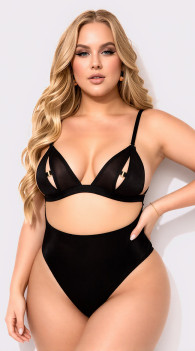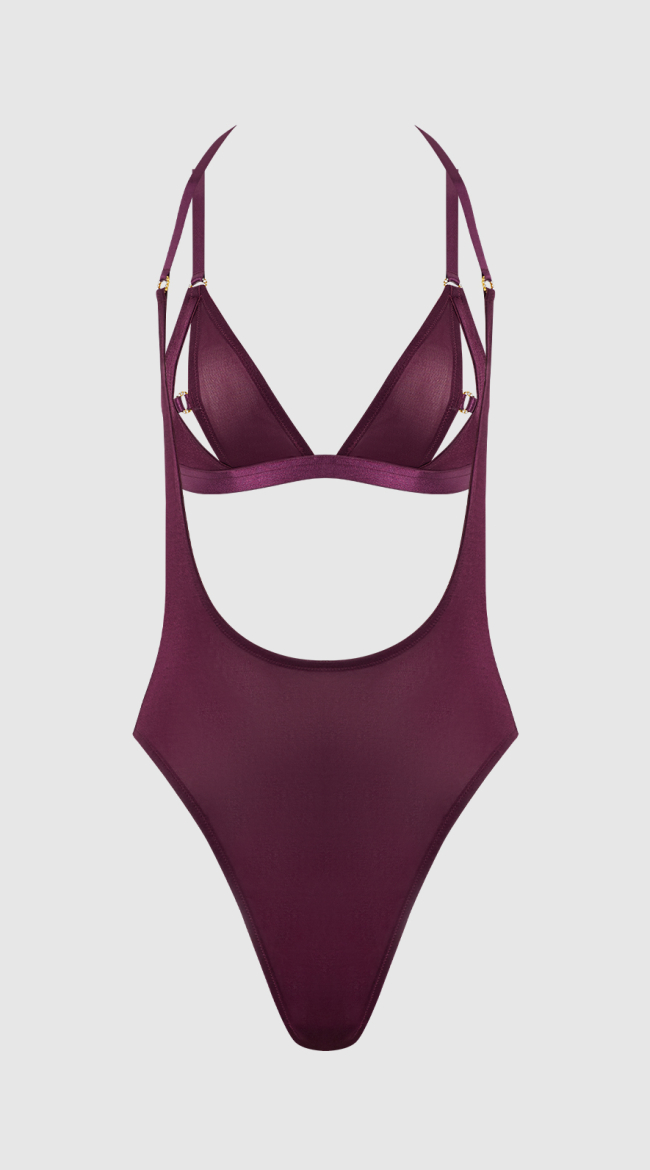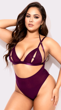 Get ready to turn up the heat in this stunning plus-size thong bodysuit. Featuring seductive triangle cups, daring cutouts, and a flattering high-leg design, this piece hugs every curve to perfection. Available in bold black and rich plum, this body-hugging beauty is all about confidence and sensuality. Lingerie for modern romantics from House of Desire.