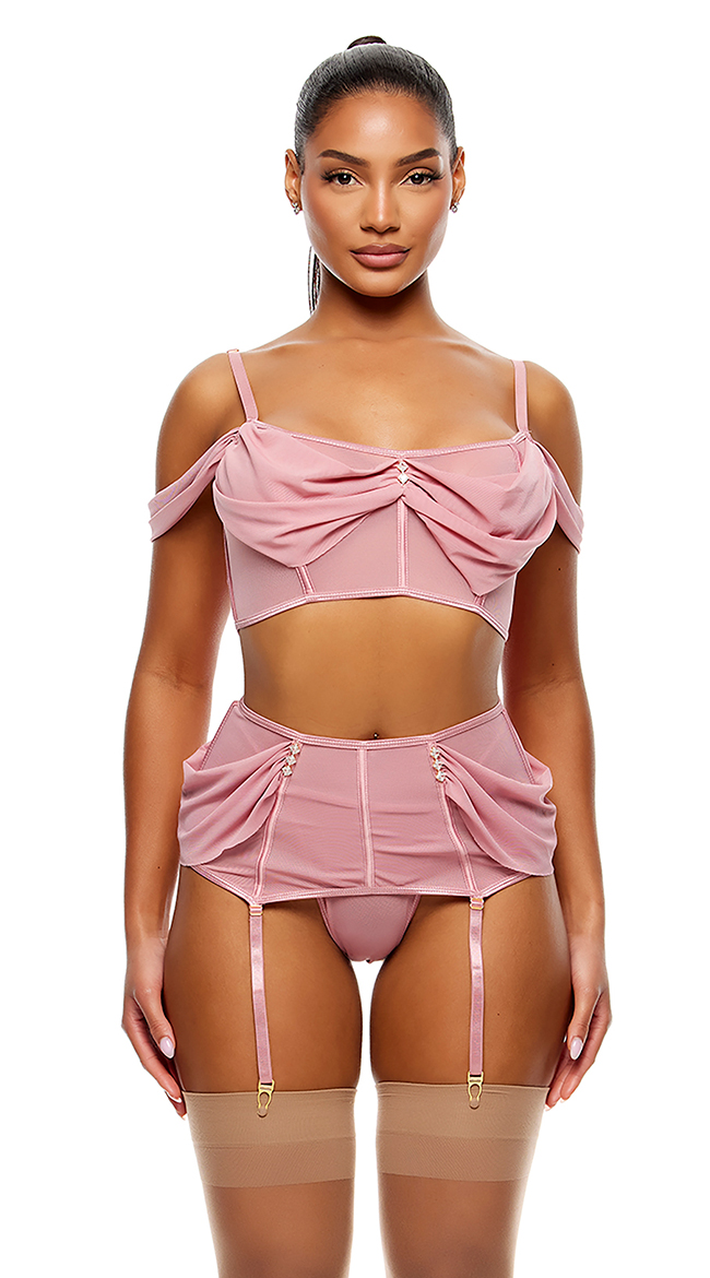 • Includes: Bra, Garter Skirt and Panty