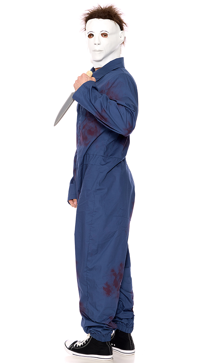 • Jumpsuit: 100% Cotton, Prop Knife: 100% Plastic, Rubber Mask: 100% Latex
