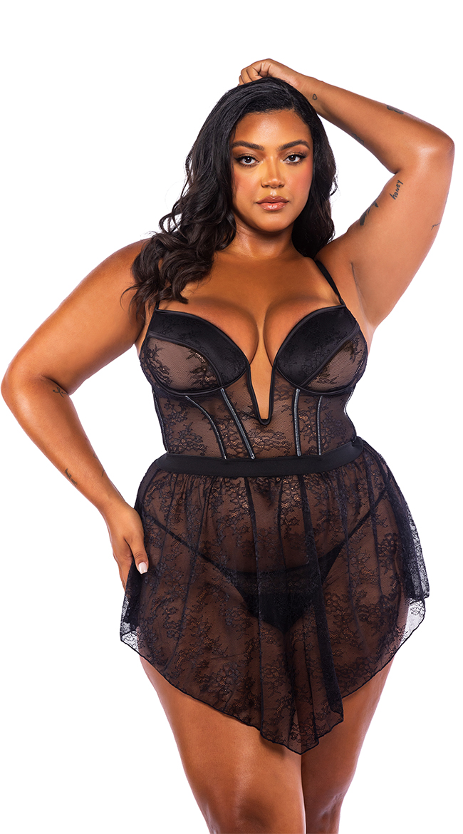 • Chantilly lace and satin, mesh back, plunge v-wire