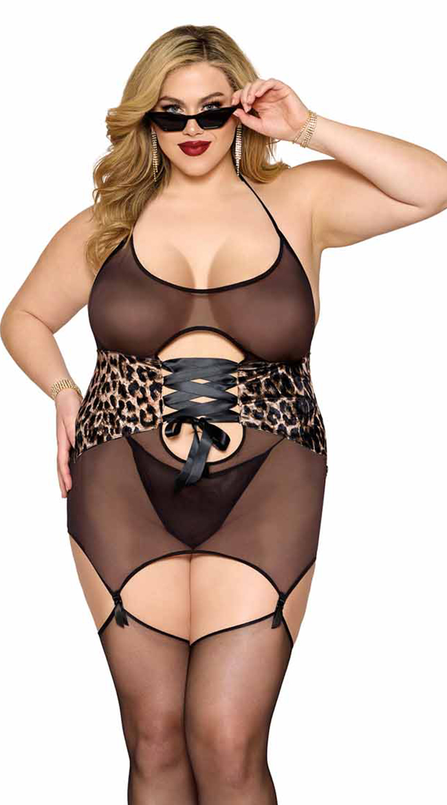 • Leopard printed velvet waist corset detail with adjustable wide ribbon lace-up