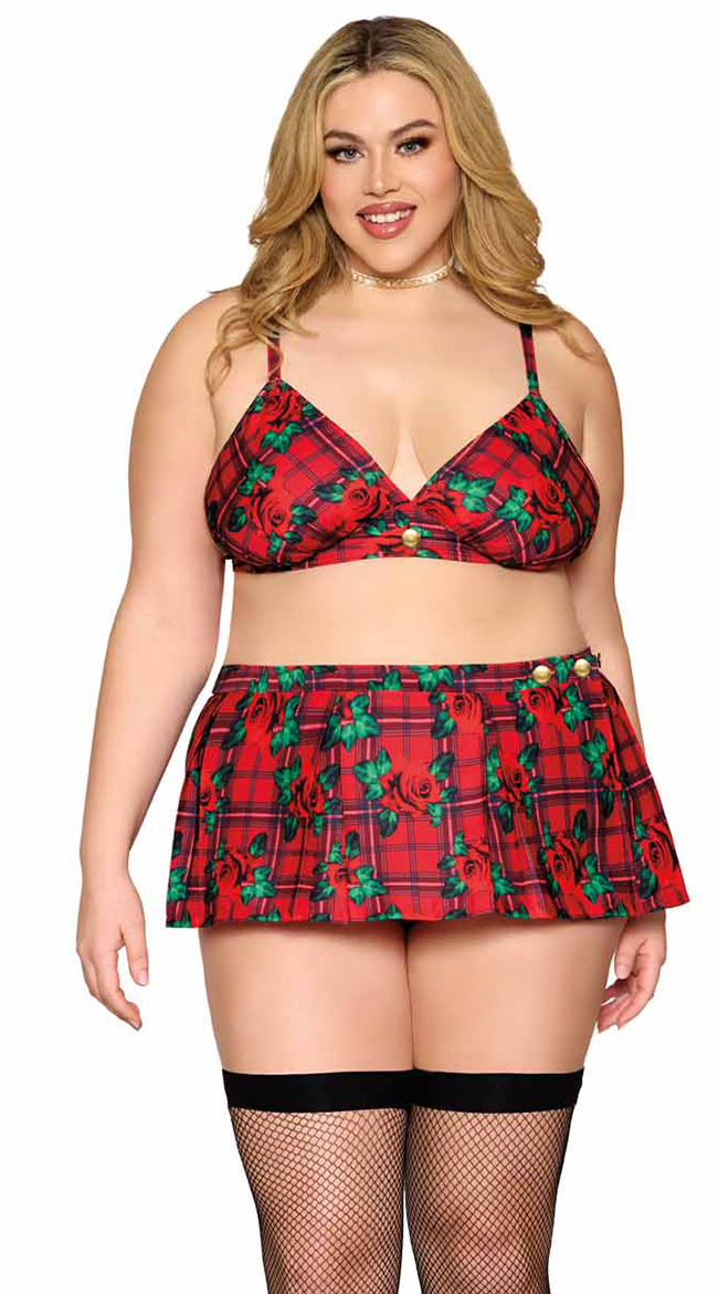 • Bralette/Mini Skirt: Woven Plaid: 100% Polyester; Exclusive of Decoration