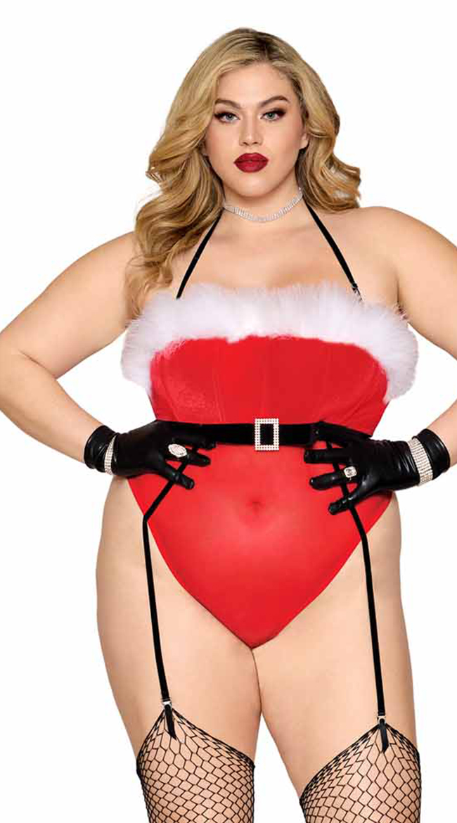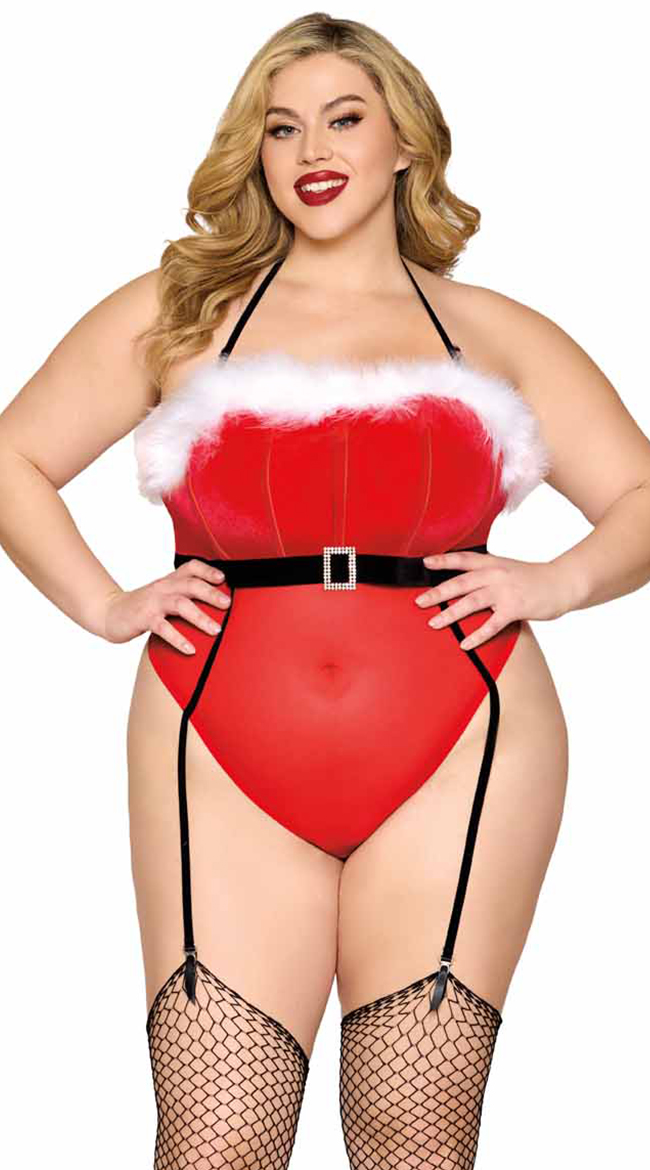 • Santa Garter Teddy: Velvet: 95% Polyester, 5% Spandex: Mesh: 90% Nylon, 10% Spandex; Exclusive of Decoration